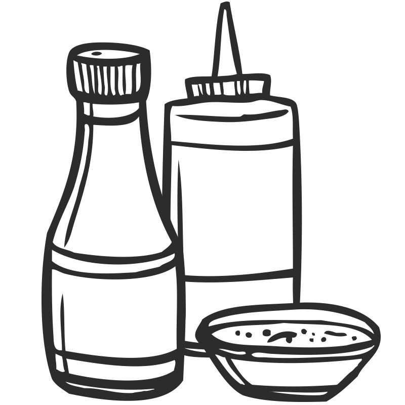 Alle broodjes worden geserveerd met sla, ui, tomaat, wortel en saus naar keuze
