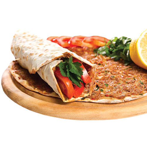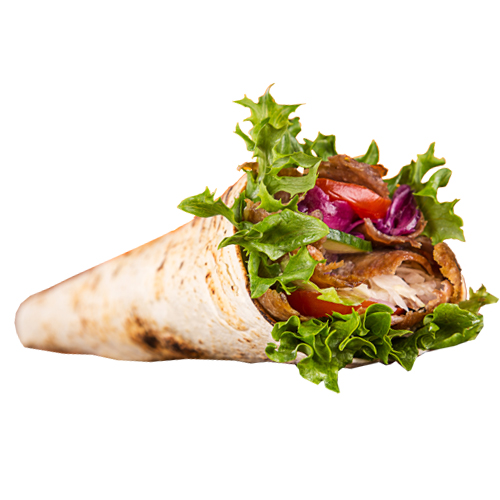 Alle dürüms worden geserveerd met sla, ui, tomaat, wortel en saus naar keuze
